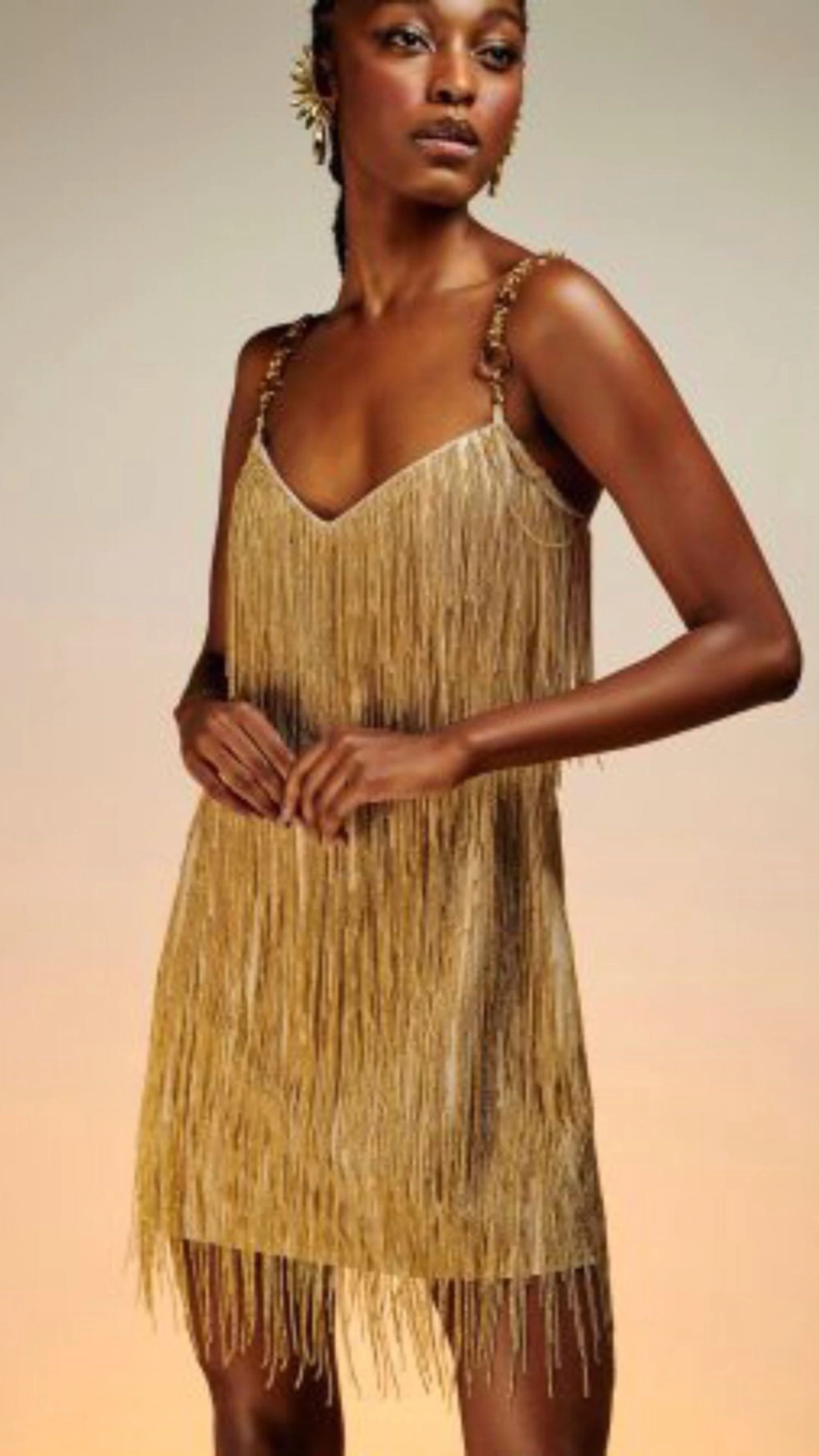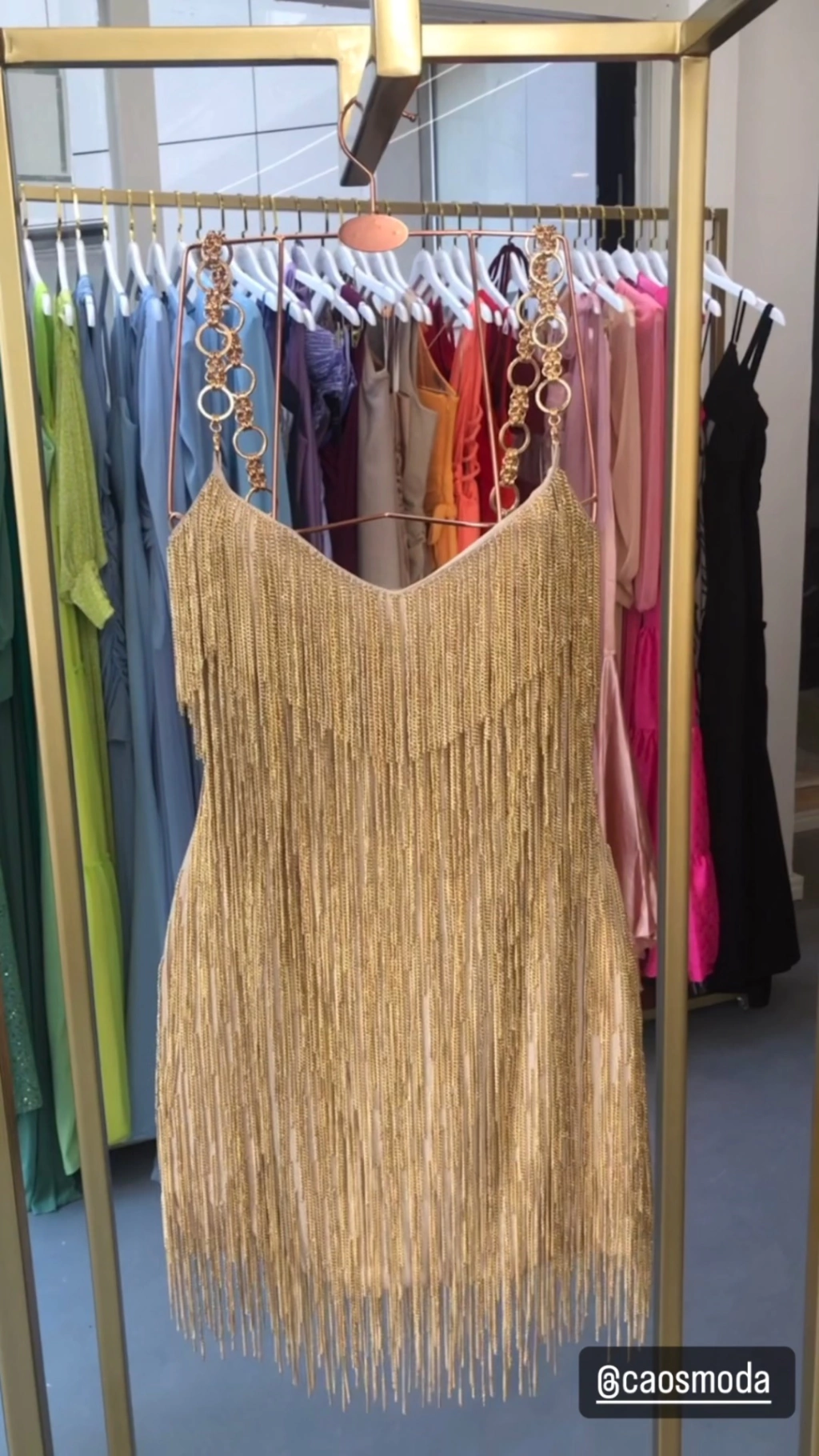 Vestido correntes douradas, todo feito a mão, super elaborado e exclusivo. Peça que você não irá passar despercebida de tanto sucesso que fará. Um peça conceito, fabricadas em poucas unidades para todo o mundo.